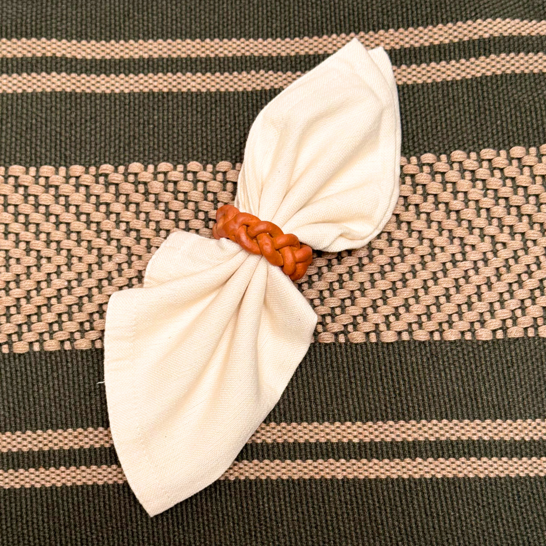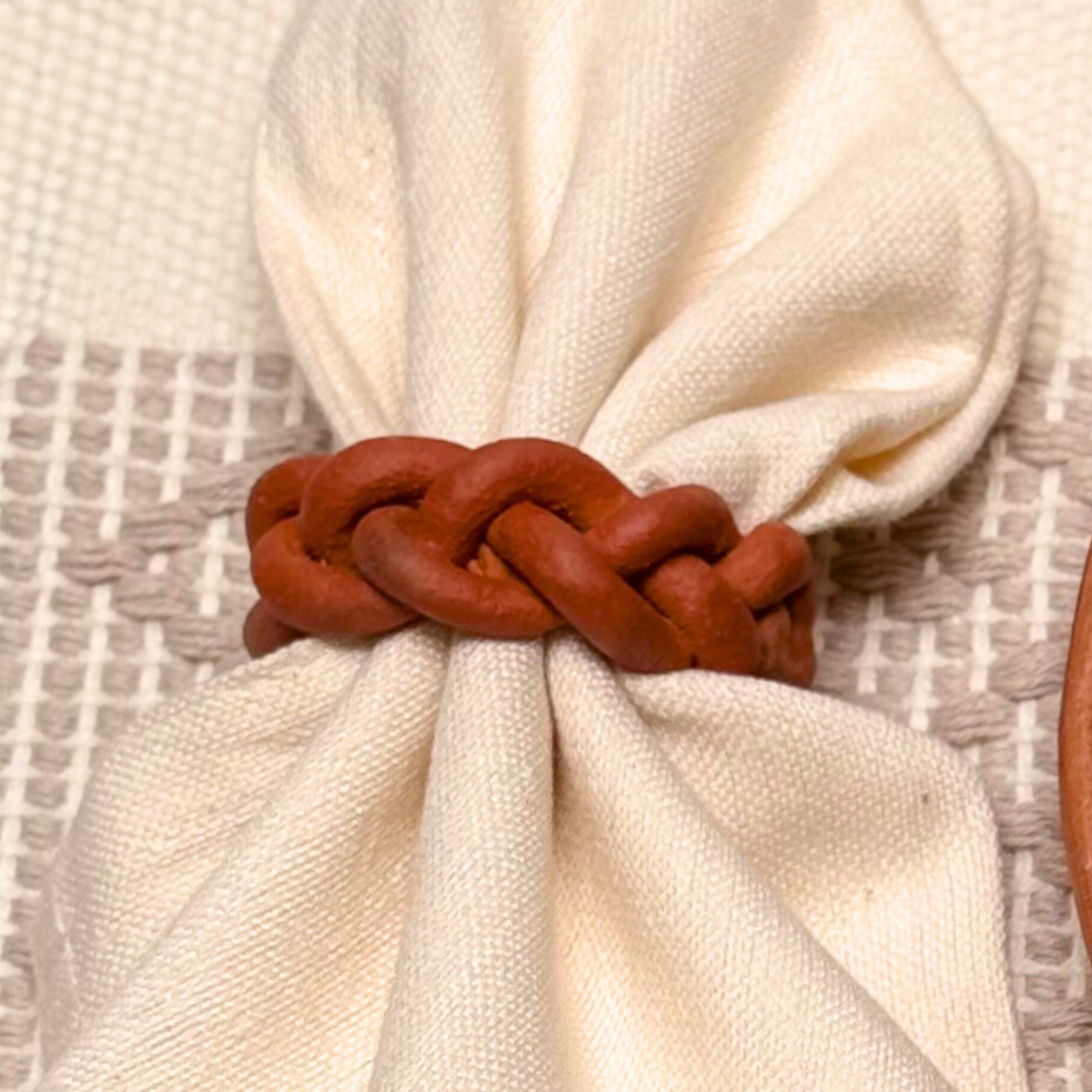 Añade un detalle de calidez y tradición a tu mesa con este anillo trenzado para servilleta de cerámica artesanal, hecho a mano en Santa María Tavehua, Oaxaca. Su diseño trenzado evoca el trabajo textil y los gestos cotidianos del hacer artesanal. Cada pieza es única, con ligeras variaciones que reflejan su proceso manual.