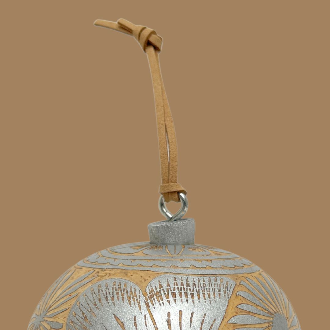 Estas bellas esferas 100% naturales tienen su origen en el árbol crescentia crujete, mejor conocido como “árbol de jícara”, presente en la Región Costa de Oaxaca. Para la elaboración de cada pieza, el fruto es pintado y tallado a mano, representando fauna y flora local.